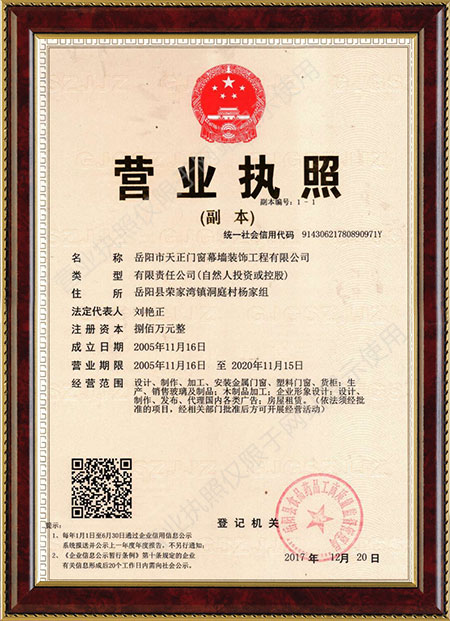 歡迎訪問岳陽市天正門窗幕墻裝飾工程有限公司!